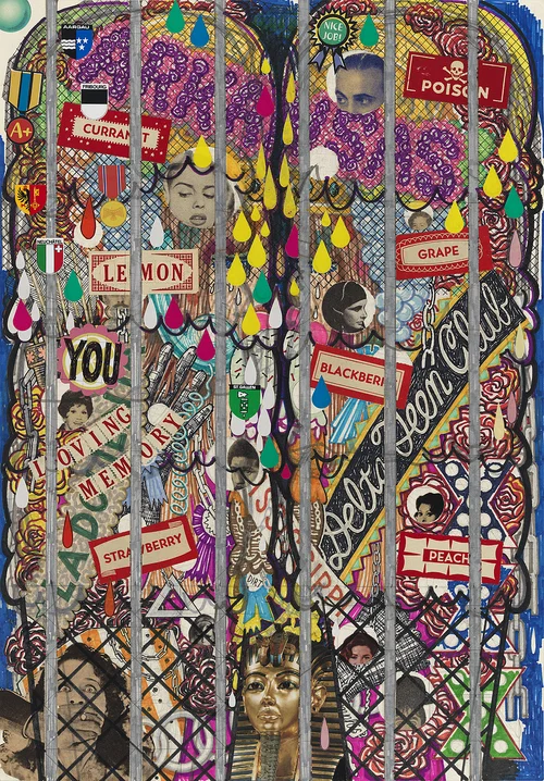 Delta Jail Shrine, 2011, Acrylic and collage on canvas, 74 X 108 inches